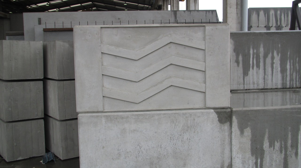Retaining wall display - depicting curve, raking offset, scale, facia pattern.